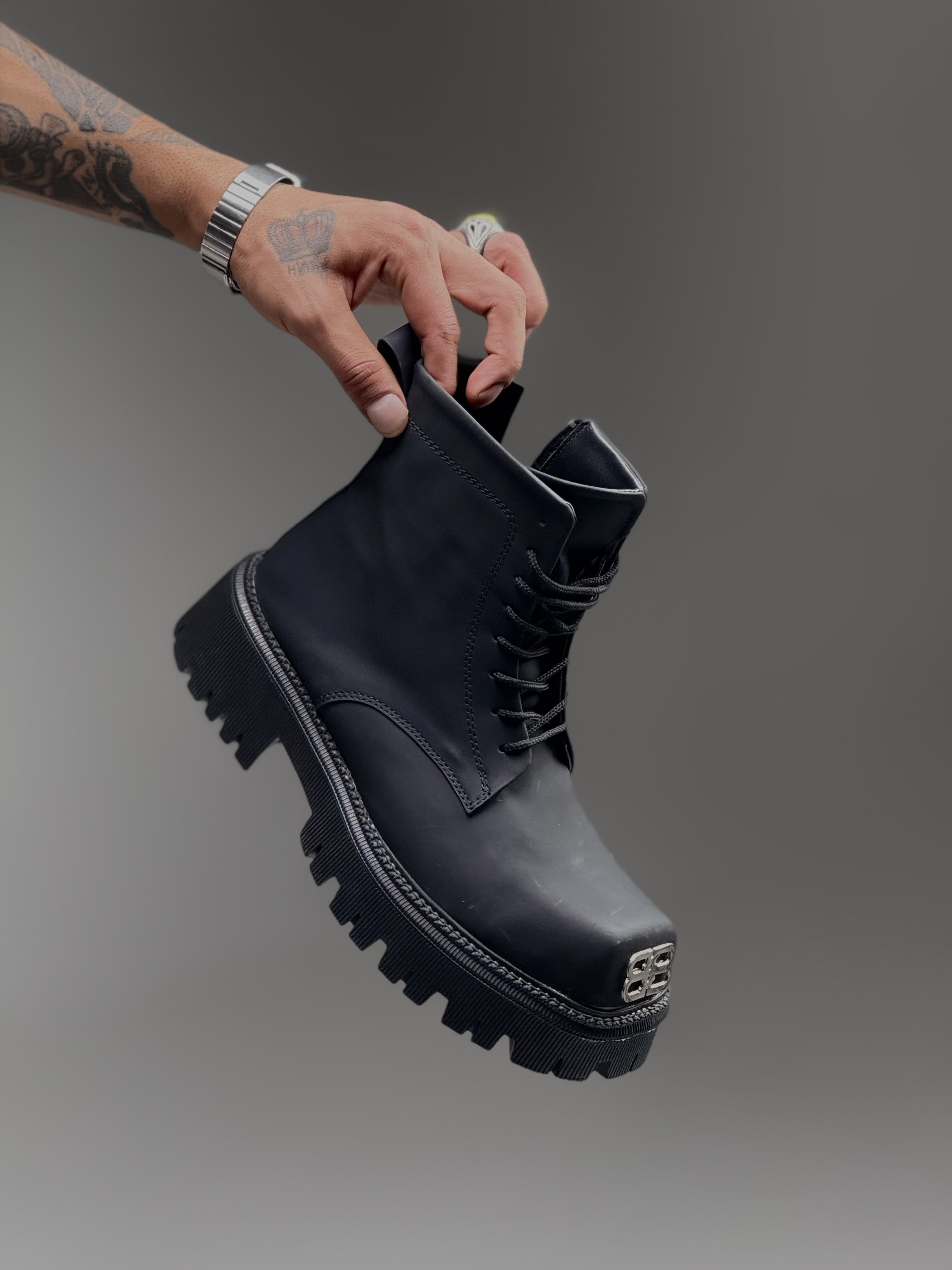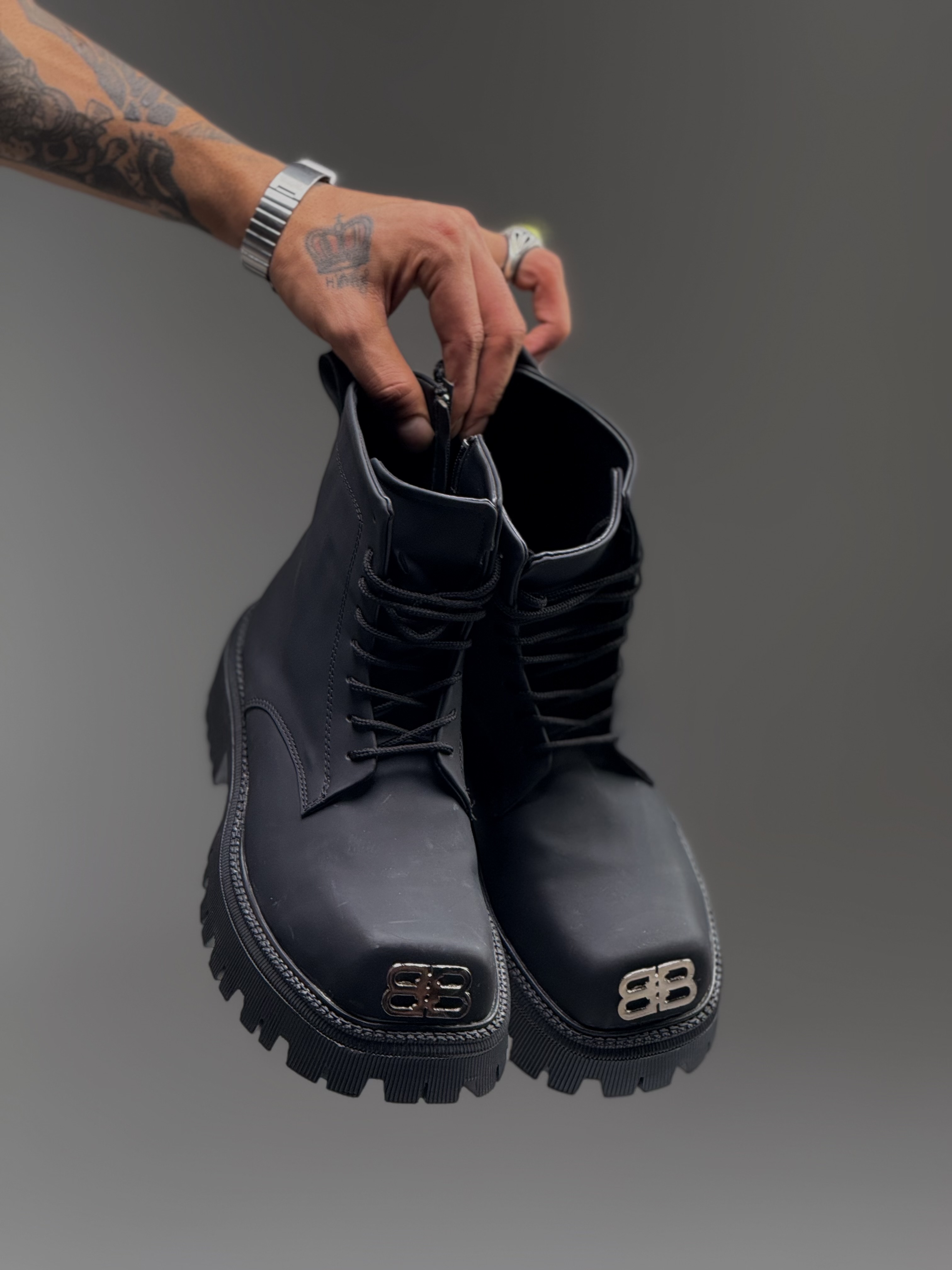 بوت پنجه مربعی بلنسیاگا با زیره مقاوم لاستیک و رویه چرم صنعتی ،انتخابی راحت و شیک برای فصول سرد